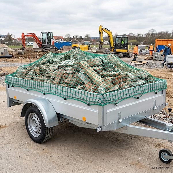 - Netz Ladungssicherung einsetzen, wenn lose/leichte Teile gesichert werden müssen (z. B. Mischladung, Kleinteile, Rollwagen).