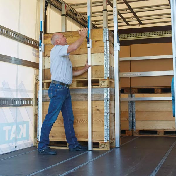 - Klemmbalken Ladungssicherung und Ladungssicherung Sperrstangen: besonders praktisch für Kisten, Kartons, leichte Paletten- und Stückgüter.