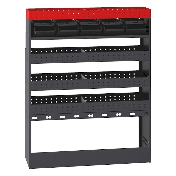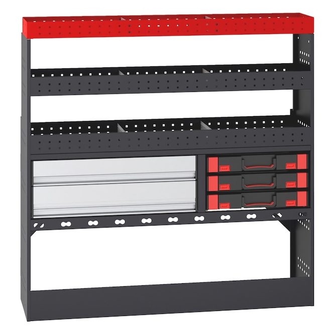 Durch feste Befestigung der Ausrüstung in Regalsystemen wird verhindert, dass Werkzeuge oder Materialien während der Fahrt verrutschen oder herausfallen. Das reduziert das Verletzungsrisiko und beugt Schäden an Fahrzeug und Ladung vor. Ein gesicherter Stauraum sorgt für einen sicheren Transport aller Arbeitsmittel.