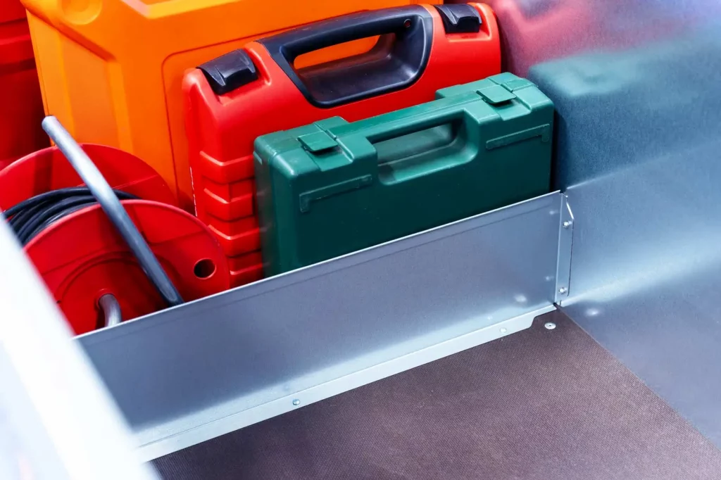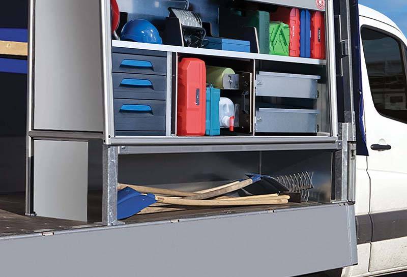 Mit der ToolBox wird das Fahrzeug zur mobilen Werkstatt: modulare Halterungen und Schubladen garantieren Übersicht und schnellen Zugriff.