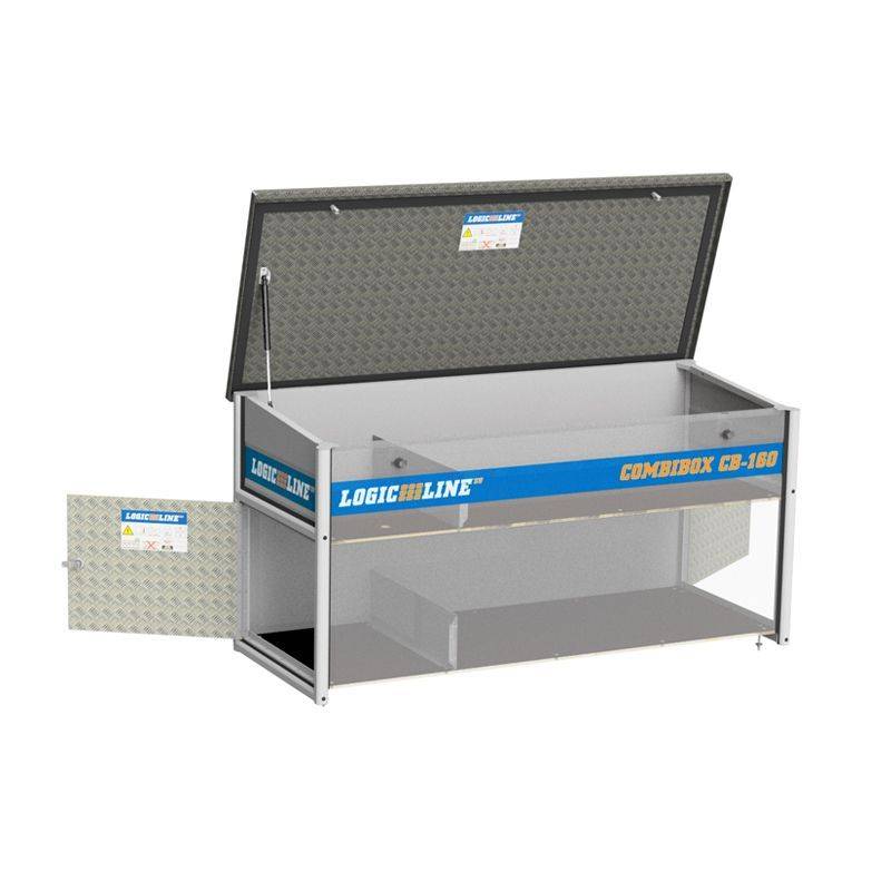 Die CombiBox vereint Werkzeugbox und Materiallager in einer kompakten Einheit. Der Clou: Zwei getrennte Bereiche bieten Platz für sperrige Werkzeuge, Kleinmaterial und Verbrauchsmaterialien – jeweils optimal organisiert. Gefertigt aus robustem Aluminium oder Stahl, ist sie wetterfest, abschließbar und für den harten Arbeitsalltag konzipiert.